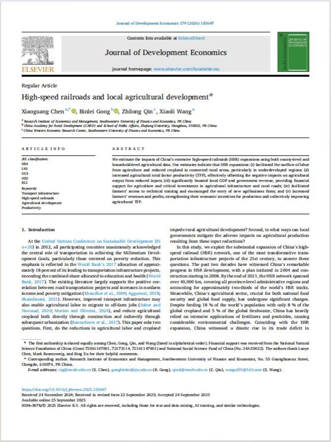 研究院秦志龙博士论文《High-speed railroads and local agricultural d...